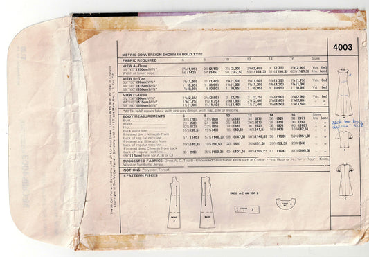 McCall's 4003 Womens Stretch Knit Ruffled Neck Flutter Sleeved Dress or Top 1970s Vintage Sewing Pattern Size 10 Bust 32.5 Inches