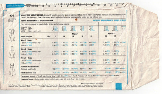 Style 1130 Womens Fit & Flared Sundress 1970s Vintage Sewing Pattern Size 20 Bust 42 inches
