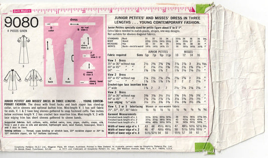 Patrón de costura vintage de los años 70 para vestido con cuello ancho y cremallera frontal de media talla para mujer Simplicity 5914, tallas 12 1/2, busto 35 pulgadas