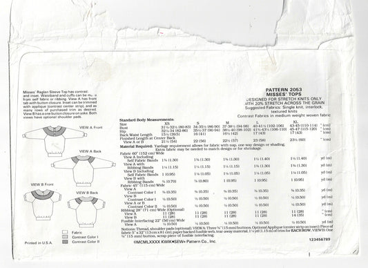 Patrón de costura vintage de los años 90 Kwik Sew 2053 para jersey elástico con bloques de color para mujer, talla XS a XL, sin cortar, doblado de fábrica