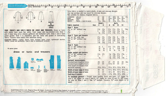 Style 3980 Teen Girls Boho Zip Front Dress Top & Pants 1970s Vintage Sewing Pattern Size 12 UNCUT Factory Folded