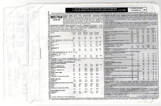 McCall's 5769 Womens Sleepwear & Loungewear Set Out Of Print Sewing Pattern Size XS - MED UNCUT Factory Folded