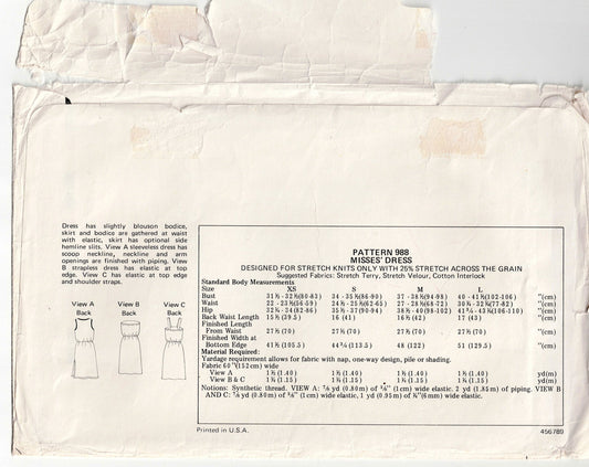 Kwik Sew 988 Womens Stretch Knit Blouson Pullover Sundress 1980s Vintage Sewing Pattern Size XS - L UNCUT Factory Folded