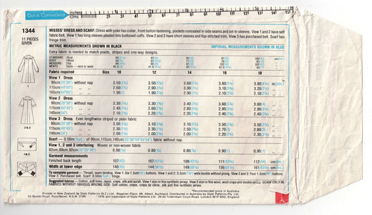 Style 1344 Womens Yoked Shirtdress & Scarf 1970s Vintage Sewing Pattern Size 18 Bust 40 inches