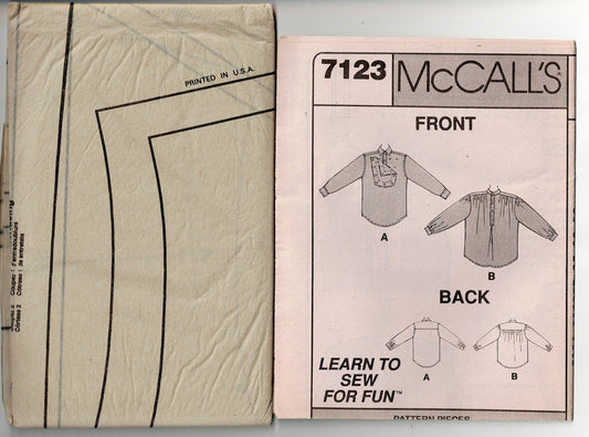 Patrón de costura vintage de los años 90 para camisas occidentales unisex McCall's 7123 para mujeres y hombres, con ribete de botones, tallas XL y XXL, sin cortar, dobladas de fábrica