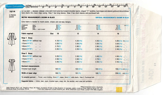 Style 1014 Womens Tucked Bodice Dress with Puff Sleeves 1970s Vintage Sewing Pattern Size 10 Bust 32.5 Inches UNCUT Factory Folded