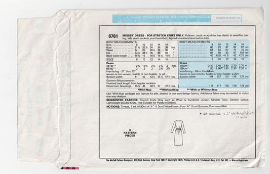 McCall's 6761 THEODORE Womens Stretch Knit Pullover Mock Wrap Dress 1970s Vintage Sewing Pattern Size 10 Bust 32.5 inches