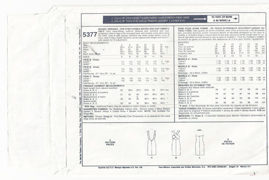 McCall's 5377 Womens Stretch Evening Sheath Dress 1990s Vintage Sewing Pattern Size 14 Bust 36 inches