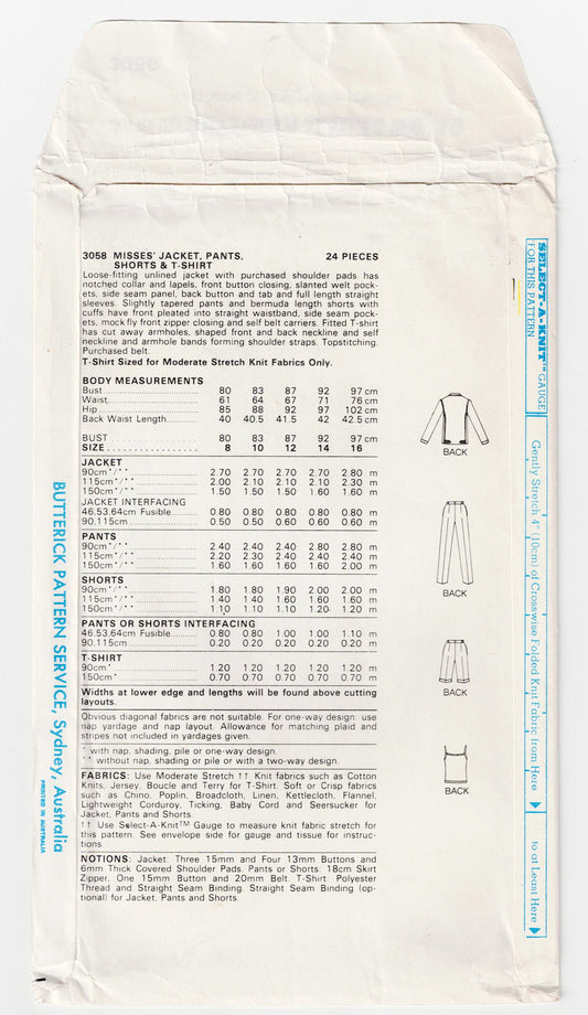 Butterick 3058 DANIEL HECHTER Womens Jacket Pants Shorts & Camisole 1970s Vintage Sewing Pattern Size 10 Bust 32.5 inches