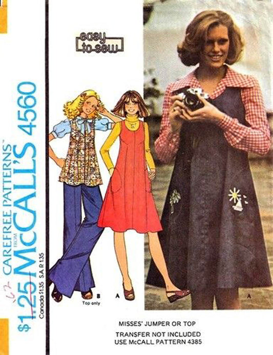 McCall's 4560 Womens Pullover Tent Dress or Top 1970s Vintage Sewing Pattern Size 14 Bust 36 inches