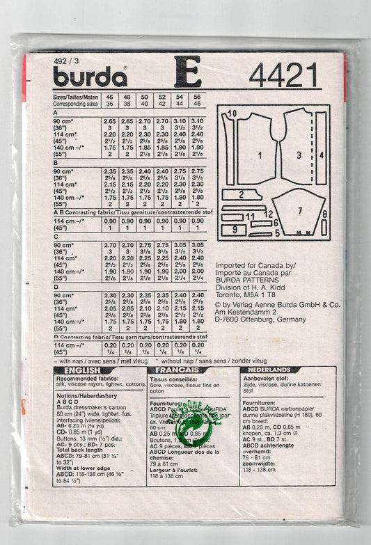Burda 4421 Mens Classic Shirt 1980s Vintage Sewing Pattern Size 36 - 46 UNCUT Factory Folded