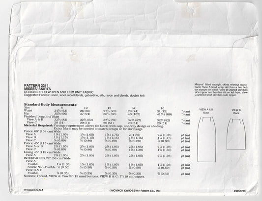 Patrón de costura Kwik Sew 2214 para faldas rectas y cruzadas para mujer, estilo vintage de los años 90, tallas 8 a 16, dobladas de fábrica y sin cortar