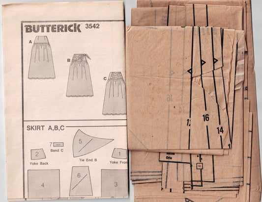 Butterick 3542 Womens Yoked Skirts with Drape 1980s Vintage Sewing Pattern Size 12 - 16