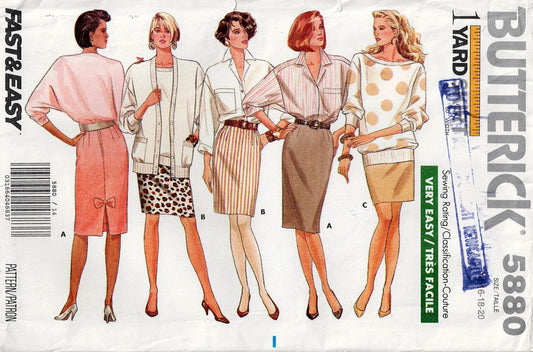 Patrón de costura vintage de los años 80 Butterick 5880 para faldas tubo de 1 yarda para mujer, talla 16-20, sin cortar, doblado de fábrica