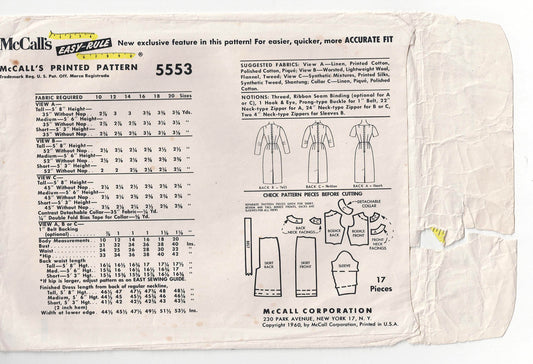 Patrón de costura vintage de los años 60 para vestido de tubo proporcionado para mujer McCall's 5553, talla 16, busto de 36 pulgadas, sin cortar, doblado de fábrica