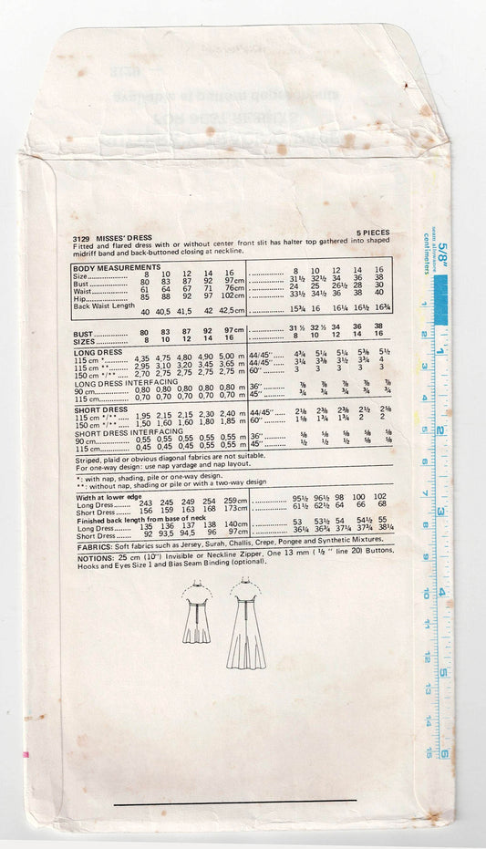 Patrón de costura vintage de los años 70 para vestido halter con banda en el abdomen para mujer Butterick 3129, talla 14, busto de 36 pulgadas