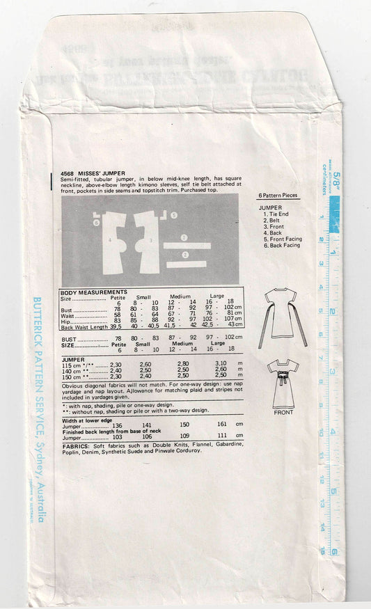 Patrón de costura de jersey sencillo con bolsillos para mujer Butterick 4568, estilo vintage de los años 70, talla MEDIANA 12-14