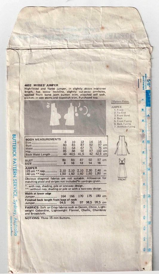 Butterick 4602 Vestido tipo jersey de cintura alta con lazos y bolsillos para mujer, patrón de costura vintage de los años 70, talla 10, busto 32,5 pulgadas