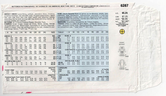 Patrón de costura vintage de los años 80 Butterick 6287 JEAN NIDETCH para vestido de noche de mujer con cintura caída y lazo superpuesto, talla 20-24, sin cortar, doblado de fábrica