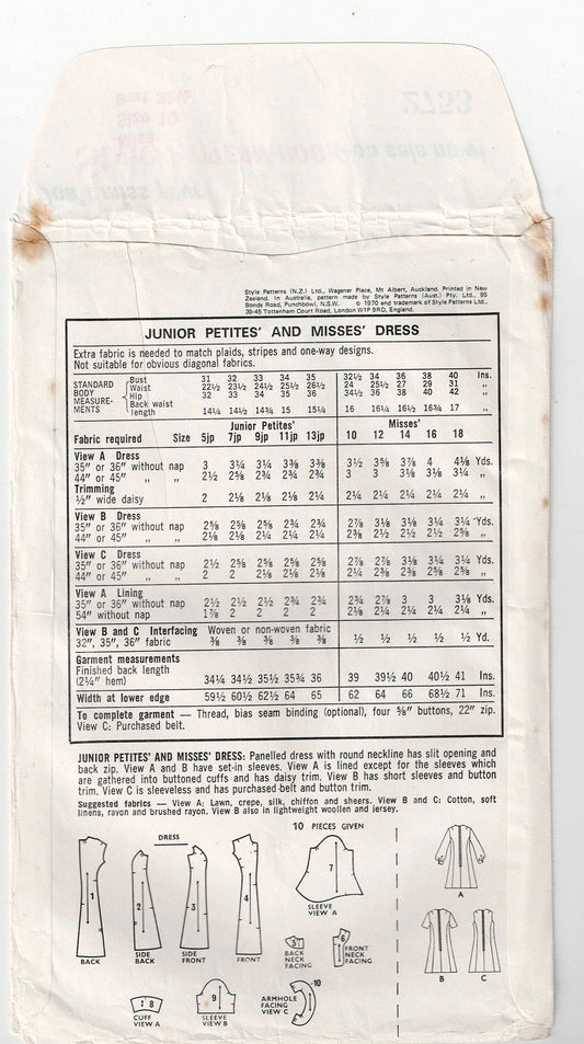 Patrón de costura vintage de los años 70 para vestido o maxivestido con pinzas para mujer Simplicity 8249, talla 14, busto 36 pulgadas