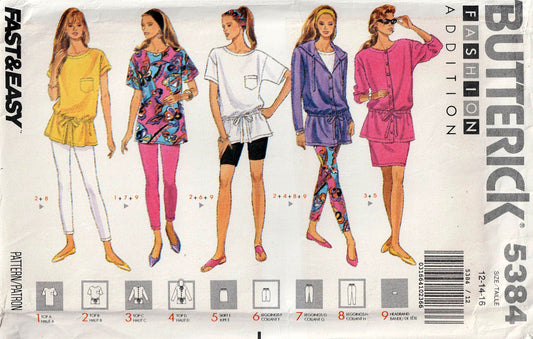 Patrón de costura Butterick 5384 para prendas casuales de punto elástico para mujer, años 90, talla 12-16, sin cortar, doblado de fábrica