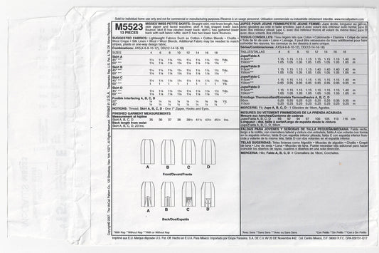 Patrón de costura agotado para faldas ajustadas con paneles y dobladillo con volantes o pliegues para mujer McCall's 5523, tallas 12 a 18, sin cortar, doblado de fábrica