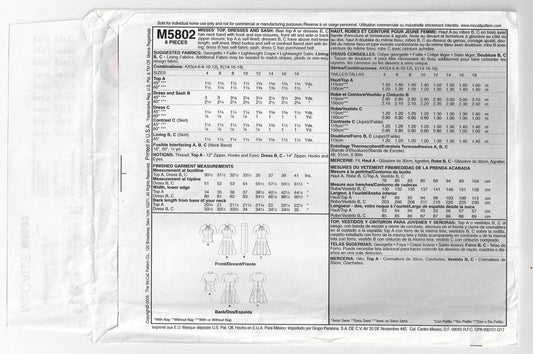 Patrón de costura de vestido ajustado McCall's 5519 para mujer, de 1 hora, agotado, talla XS - MED, sin cortar, doblado de fábrica