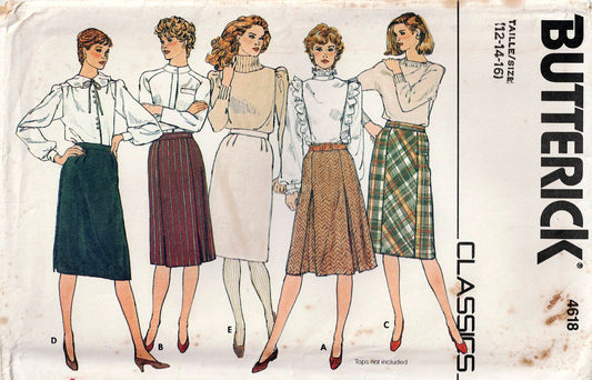 Patrón de costura de falda clásica en forma de A para mujer Butterick 4618, años 80, talla 12-16, sin cortar, doblado de fábrica