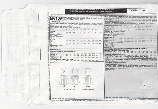 Patrón de costura agotado para vestido de punto elástico con banda abdominal y bolsillos McCall's 6109 para mujer, tallas 4 a 12, sin cortar, doblado de fábrica