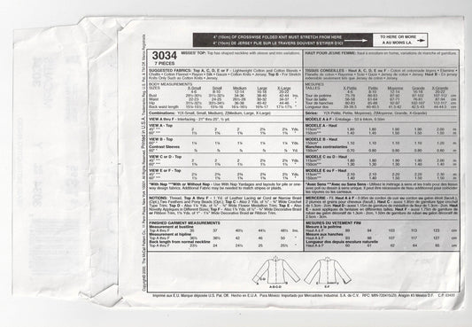 Patrón de costura agotado para caftán jersey EASY 3032 de McCall para mujer, talla XS - MED SIN CORTAR, doblado de fábrica