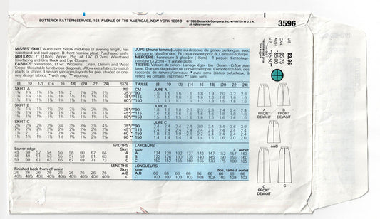 Patrón de costura de falda clásica en forma de A para mujer Butterick 3596, años 80, talla 20-24, sin cortar, doblado de fábricaPrecio habitual $10.00 AUDPrecio habitualPrecio unitario / por$10.00 AUDPrecio de oferta $10.00 AUD