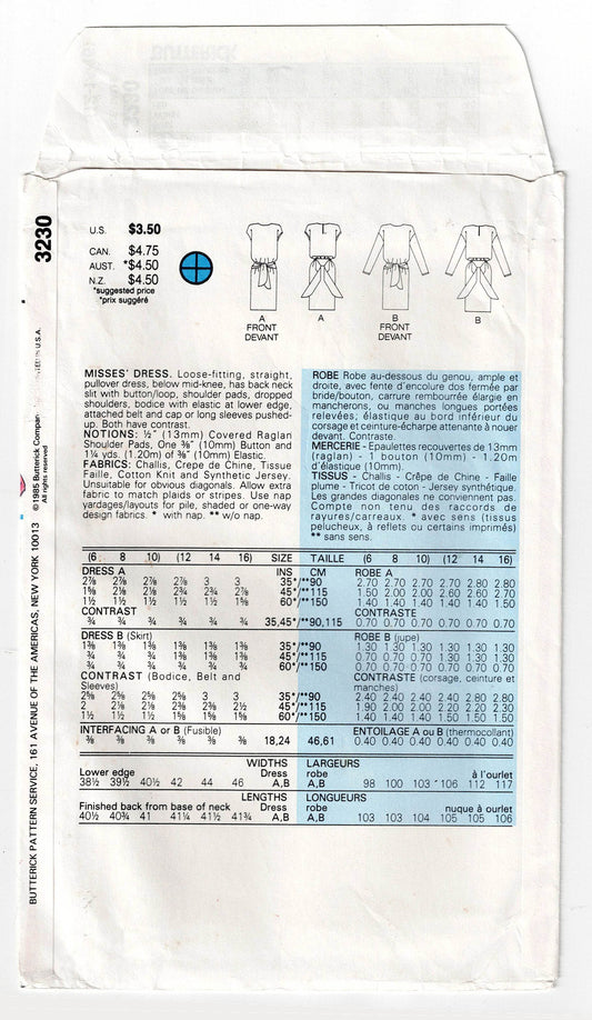 Patrón de costura de vestido estilo jersey con faja para mujer Butterick 3230, estilo vintage de los años 80, talla 12-16, sin cortar, doblado de fábricaPrecio habitual $9.00 AUDPrecio habitualPrecio unitario / por$9.00 AUDPrecio de oferta $9.00 AUD