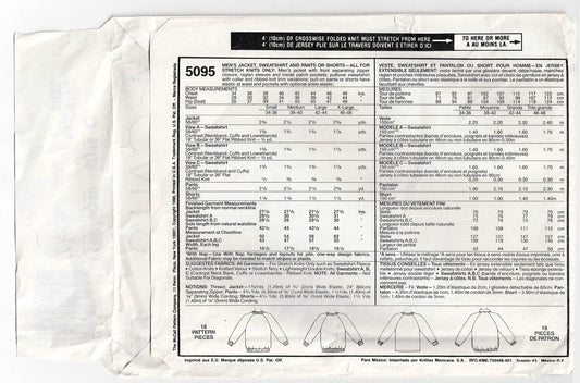Patrón de costura vintage de los años 1990 para chaqueta, pantalones y pantalones cortos de punto elástico para hombre McCall's 5095, tallas XL, pecho/busto 42-44 pulgadas, sin cortar, doblado de fábricaPrecio habitual $12.00 AUDPrecio habitualPrecio unitario / por$12.00 AUDPrecio de oferta $12.00 AUD