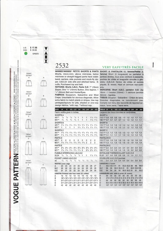 Patrón de costura de pantalones cortos y pantalones de mujer Vogue Basic Design 2532, agotados, talla 18-22, sin cortar, doblado de fábricaPrecio habitual $14.00 AUDPrecio habitualPrecio unitario / por$14.00 AUDPrecio de oferta $14.00 AUD
