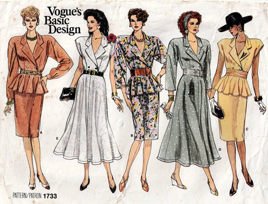 Patrón de costura vintage de los años 80, diseño básico 1733, para mujer, con peplum y falda, variaciones, talla 8-12Precio habitual $8.00 AUDPrecio habitualPrecio unitario / por$8.00 AUDPrecio de oferta $8.00 AUD