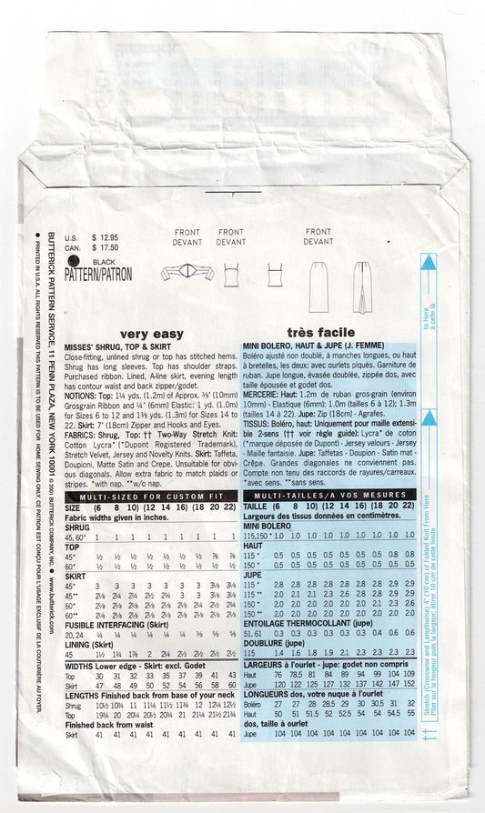 Patrón de costura Butterick 6401 para mujer, prenda formal de noche, elástica, con falda y bolero, sin cortar, doblado de fábrica, talla 12-16Precio habitual $12.00 AUDPrecio habitualPrecio unitario / por$12.00 AUDPrecio de oferta $12.00 AUD