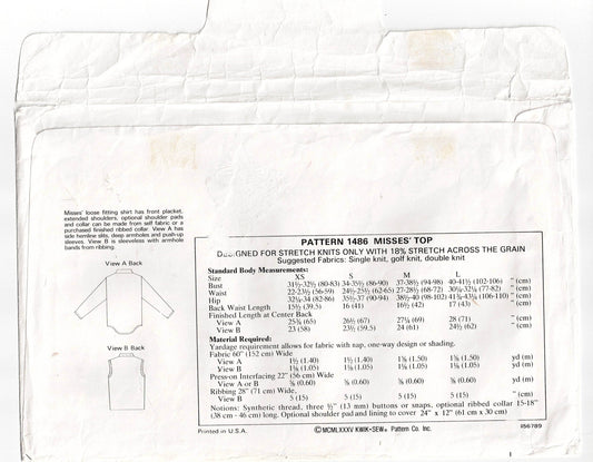 Patrón de costura vintage de los años 80 con lengüeta delantera y cuello alto elástico para mujer Kwik Sew 1486, talla XS a L, sin cortar, doblado de fábricaPrecio habitual $10.00 AUDPrecio habitualPrecio unitario / por$10.00 AUDPrecio de oferta $10.00 AUD