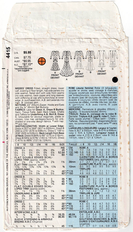 Patrón de costura vintage de los años 80 para vestido de novia o dama de honor con dobladillo de sirena y mangas abullonadas Butterick 4415, talla 8 a 12, doblado de fábrica sin cortarPrecio habitual $15.00 AUDPrecio habitualPrecio unitario / por$15.00 AUDPrecio de oferta $15.00 AUD