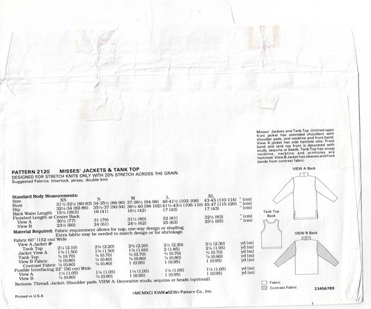 Patrón de costura vintage de los años 90 para camiseta y chaqueta elásticas Kwik Sew 2120 para mujer, tallas XS a XL, sin cortar, doblado de fábricaPrecio habitual $10.00 AUDPrecio habitualPrecio unitario / por$10.00 AUDPrecio de oferta $10.00 AUD