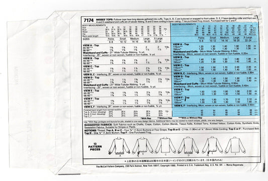 Patrón de costura McCall's 7174 para jerseys casuales de mujer, estilo vintage de los años 80, talla MEDIANA 12-14, sin cortar, doblado de fábricaPrecio habitual $10.00 AUDPrecio habitualPrecio unitario / por$10.00 AUDPrecio de oferta $10.00 AUD