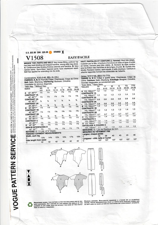 Patrón de costura original de diseñador Vogue 1508 ZANDRA RHODES para blusa y pantalones de noche asimétricos agotados, tallas L a XL, sin cortar, doblado de fábricaPrecio habitual $20.00 AUDPrecio habitualPrecio unitario / por$20.00 AUDPrecio de oferta $20.00 AUD