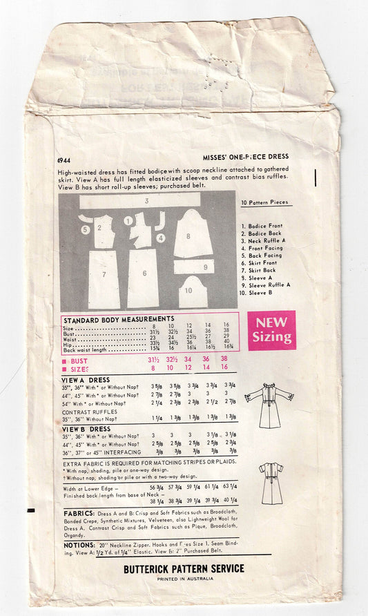 Patrón de costura vintage de los años 60 para vestido de talle alto con volantes opcionales Butterick 4944 para mujer, talla 12, busto 32,5 pulgadasPrecio habitual $12.00 AUDPrecio habitualPrecio unitario / por$12.00 AUDPrecio de oferta $12.00 AUD