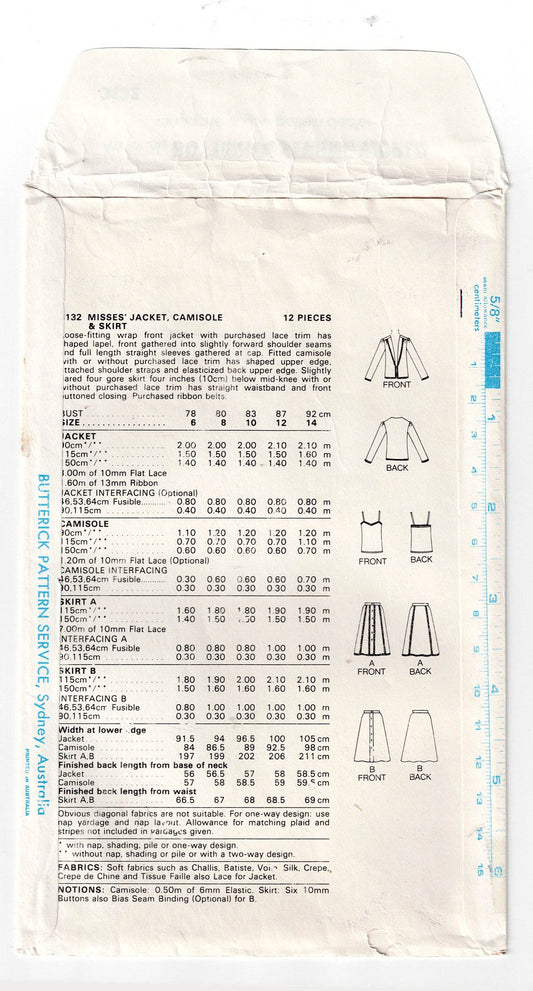 Patrón de costura vintage de los años 80 para falda y chaqueta camisola para mujer Butterick 3132, talla 12, busto de 34 pulgadas, sin cortar, doblado de fábrica