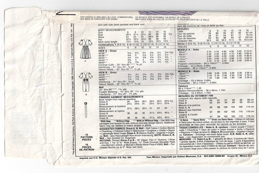 Patrón de costura vintage de los años 80 para vestido ajustado o acampanado con puños y cinturón doblados hacia atrás para mujer McCall's 3525, talla 10-14, doblado de fábrica sin cortar