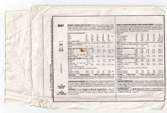 Patrón de costura vintage de los años 80 para vestido con hombros plisados y mangas cortas para mujer de la colección DYNASTY de McCall 2547, talla 12, busto de 34 pulgadas, sin cortar, doblado de fábrica