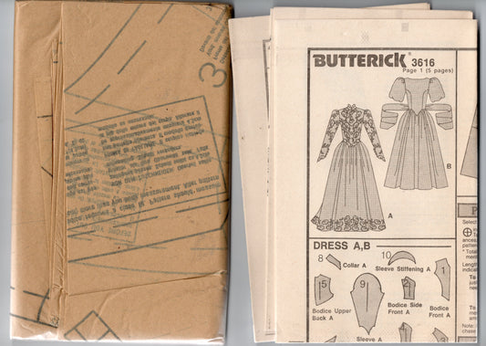 Patrón de costura vintage de los años 80 Butterick 3616 para vestido de novia con espalda baja, mangas abullonadas y cola opcional, talla 10, 12 o 14