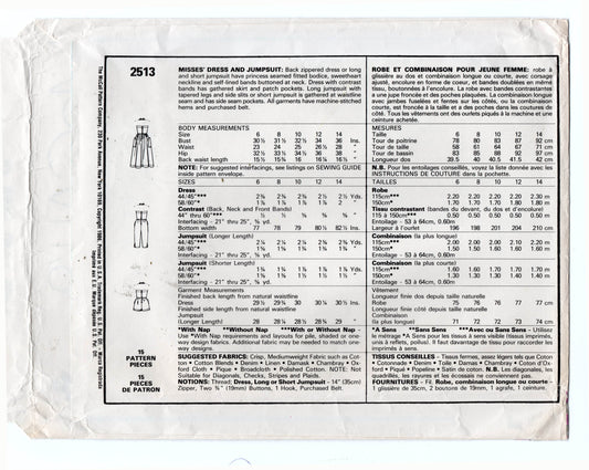 Patrón de costura vintage de los años 80 para vestido, mono y mameluco con cuello halter APOLLONIA KOTERO 2513 de McCall, para mujer, talla 10, busto de 32,5 pulgadas