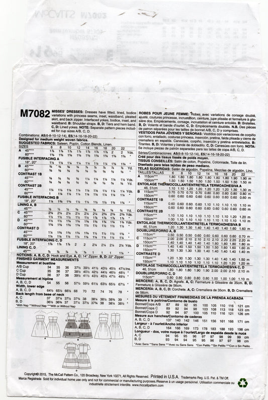 Patrón de costura agotado para vestidos con falda amplia con paneles en el abdomen para mujer M7082 de McCall, talla 14-22, sin cortar, doblado de fábrica