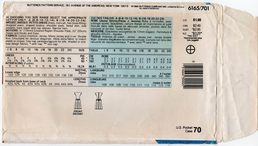 Patrón de costura Butterick See & Sew 6165 para vestido de talle bajo elástico fácil de usar para mujer, años 80, talla 6 a 14, sin cortar, doblado de fábrica