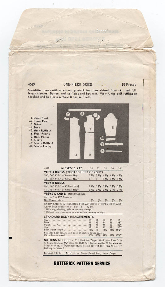 Butterick 4519 Patrón de costura vintage para vestido de noche NORMA TULLO de los años 60, para mujer, talla 12, busto de 32 pulgadas